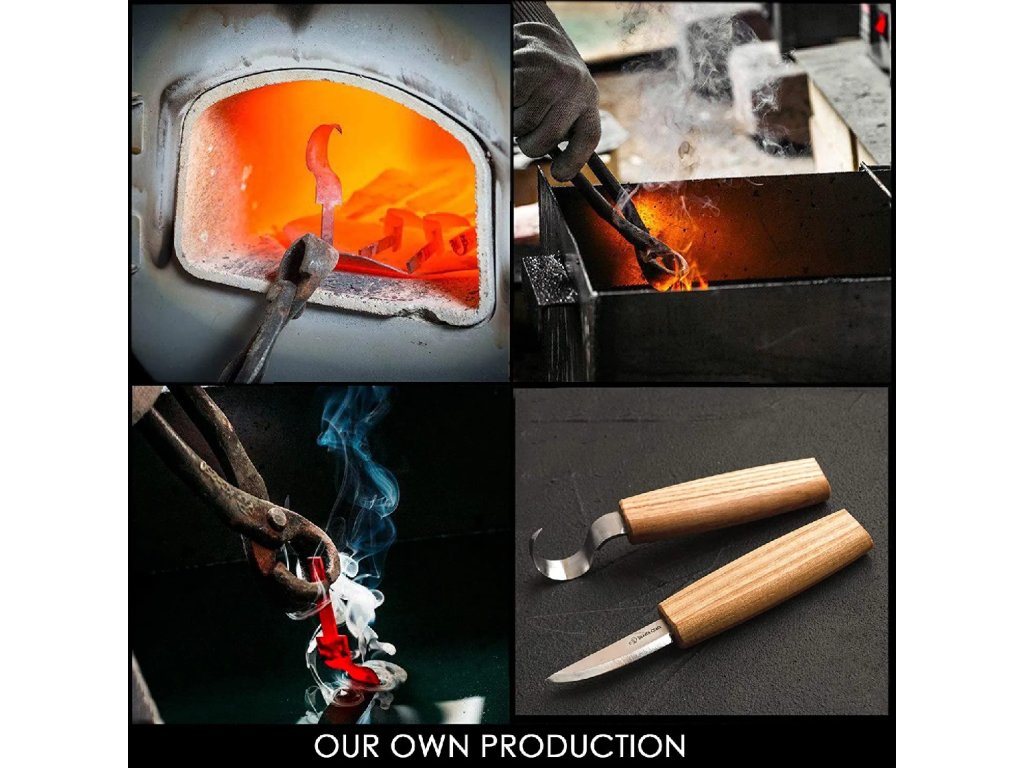 BeaverCraft S01 to podstawowy zestaw narzędzi przeznaczony dla osób rozpoczynających przygodę z rzeźbieniem w drewnie, jak również dla hobbystów, którzy chcą tworzyć praktyczne i dekoracyjne przedmioty. Zestaw świetnie sprawdza się przy wycinaniu łyżek, kuksy, misek oraz innych form wymagających wgłębienia. Noże wykonane ze stali węglowej 65G gwarantują płynne, czyste cięcie bez pęknięć włókien.