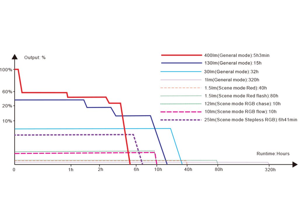- 4 tryby światła białego – do 320 godzin pracy