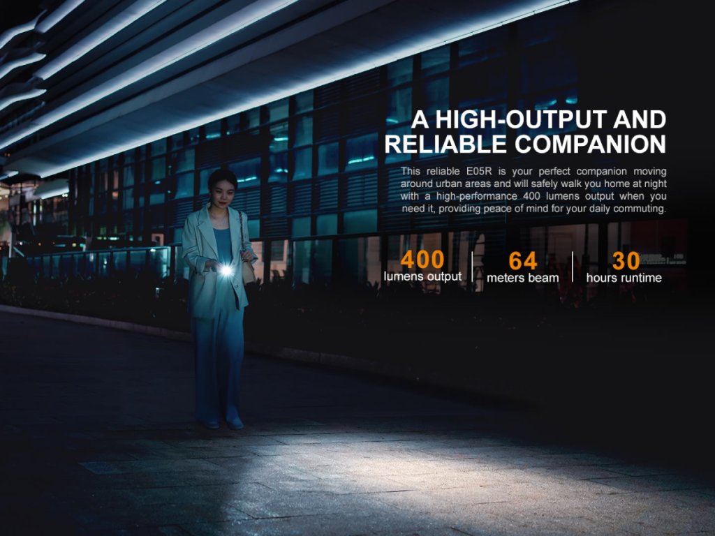 Fenix E05R to kompaktowa, wytrzymała i niezwykle wydajna latarka EDC, gotowa na każdą sytuację – w mieście i w terenie.