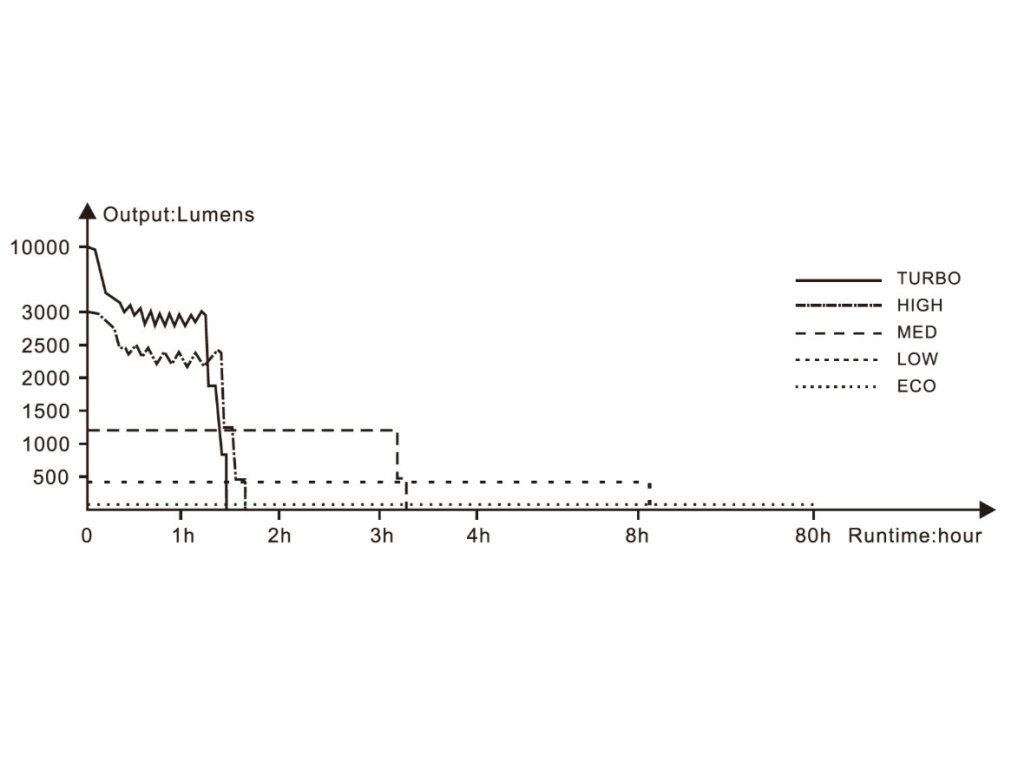 - 10000 lumenów: potężny strumień światła z zasięgiem do 500 m.
