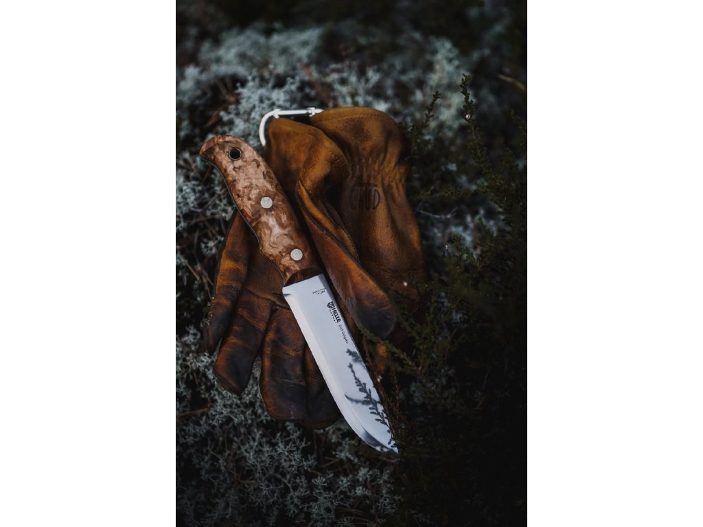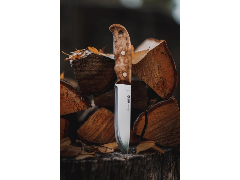 Helle Didi Galgalu to jeden z najbardziej rozpoznawalnych modeli norweskiej marki Helle. Powstał we współpracy z zespołem Voetspore z RPA, specjalizującym się w długodystansowych ekspedycjach. Nóż został zaprojektowany i przetestowany bezpośrednio w afrykańskiej dziczy, a jego obecna wersja korzysta z ulepszonej stali Alleima 14C28N oraz pięknej rękojeści z karelskiej brzozy.