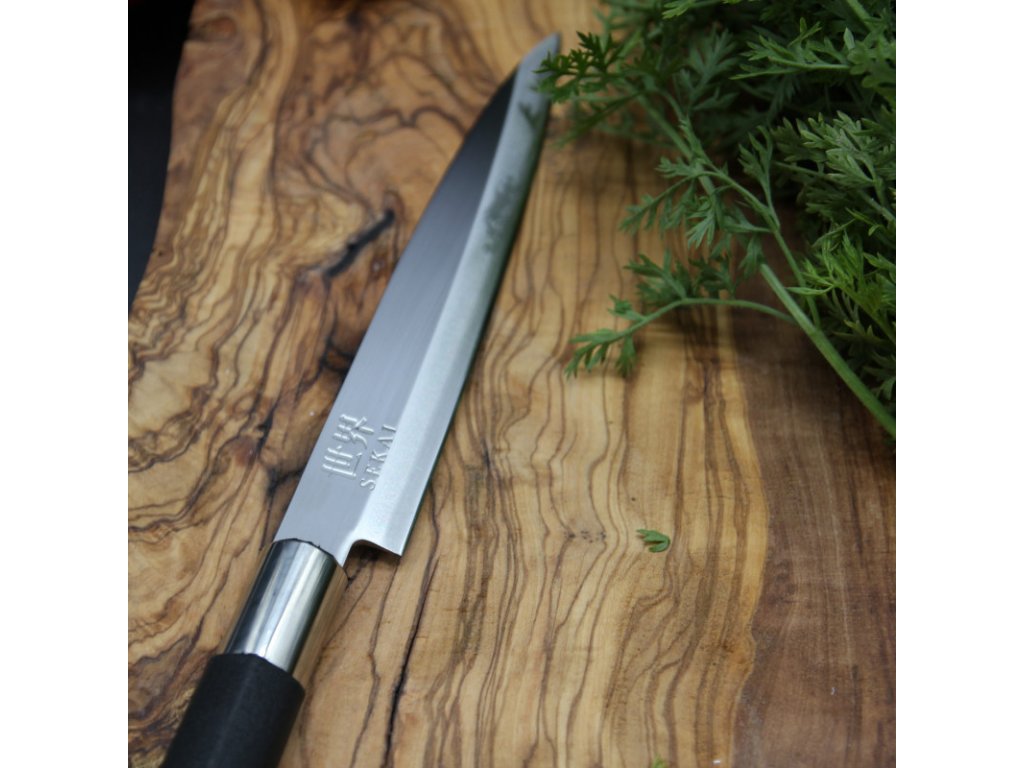 - Wąska i długa klinga – zaprojektowana do krojenia jednym pociągnięciem.