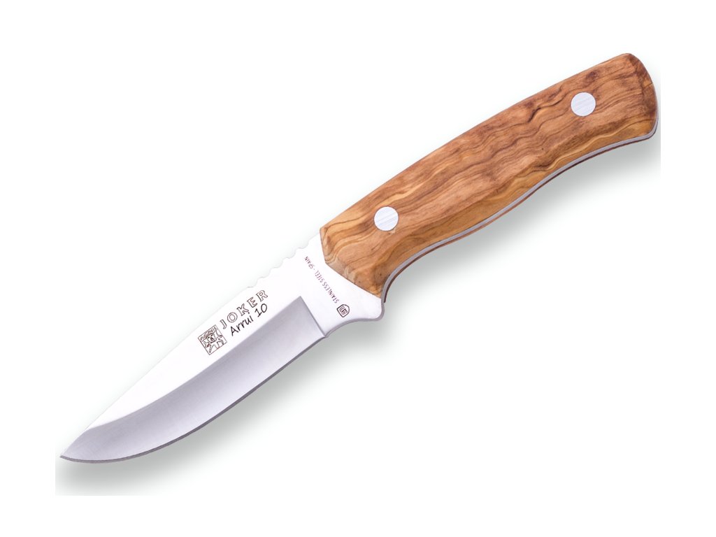 Joker Arruí CO60 to mocny i niezawodny nóż o stałej klindze, stworzony z myślą o myśliwych, bushcrafterach oraz entuzjastach wypraw terenowych. Ostrze wykonane z odpornej stali nierdzewnej MoVa (1.4116) radzi sobie doskonale z drewnem, żywnością i innymi zadaniami w terenie. Rękojeść z naturalnego drewna oliwnego zapewnia pewny chwyt i wyjątkową estetykę.