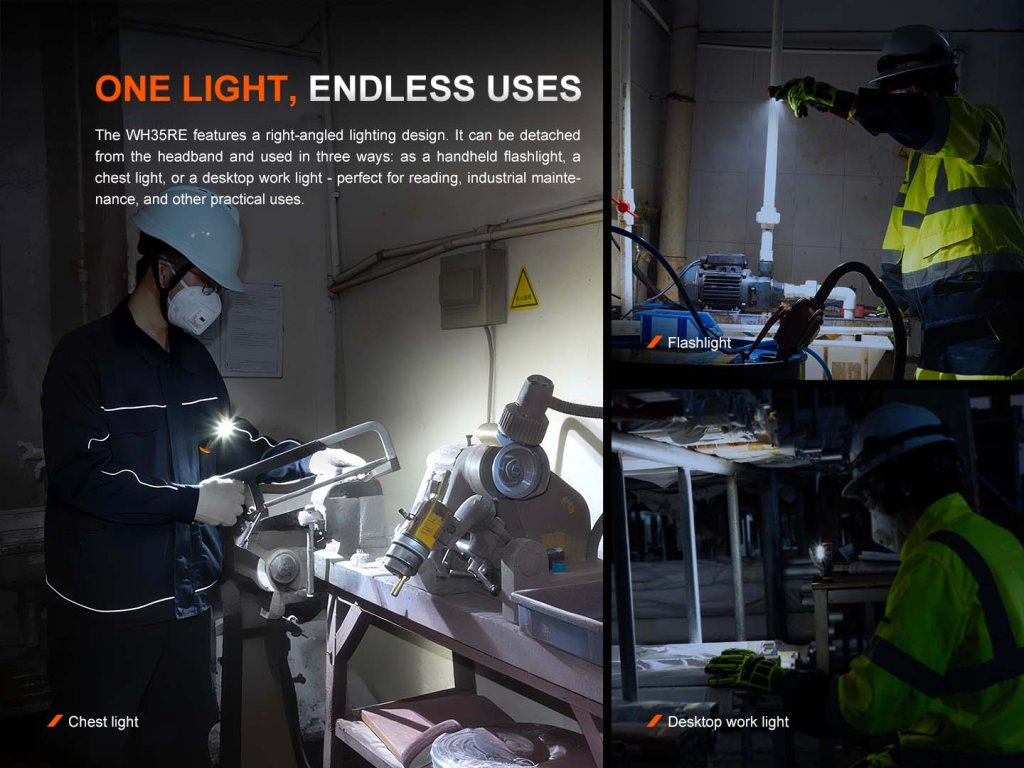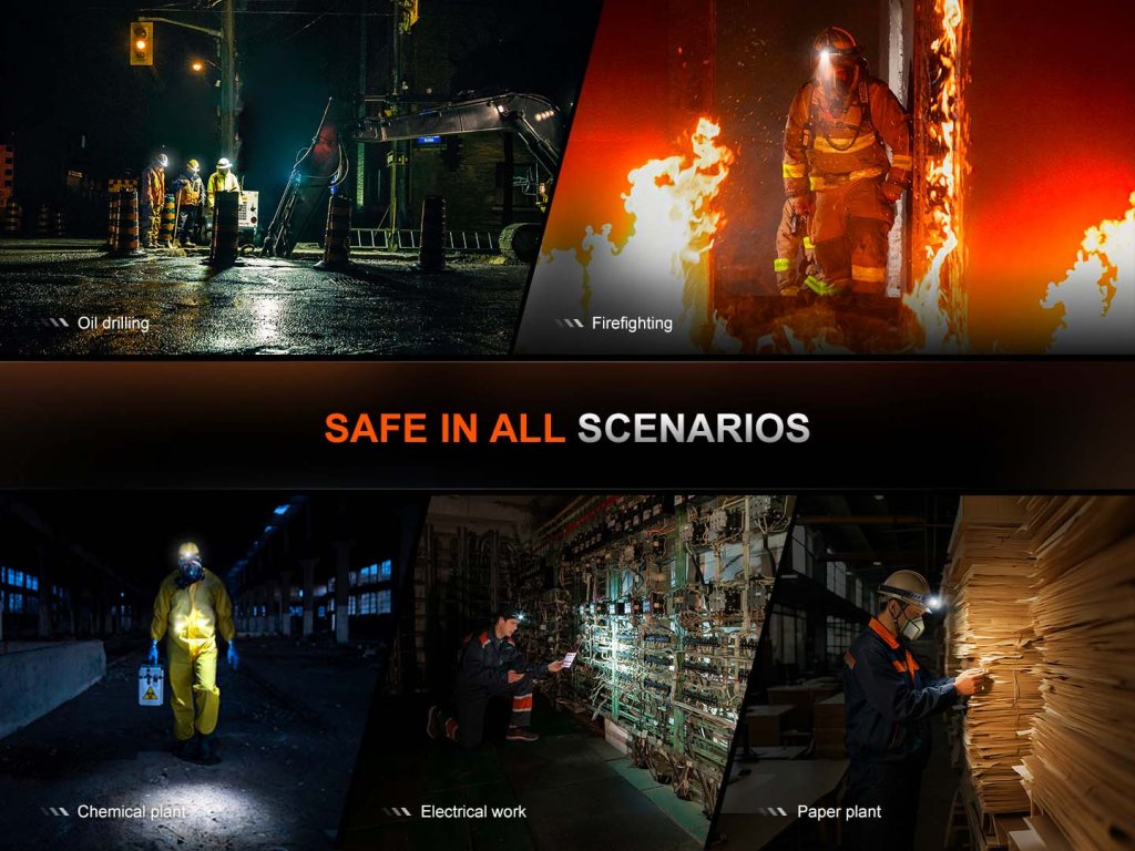 Fenix WH35RE została zaprojektowana specjalnie do pracy w przestrzeniach o podwyższonym ryzyku eksplozji – z pełną certyfikacją ATEX, IECEx i GRGT. To idealne oświetlenie dla branży chemicznej, energetycznej, rafineryjnej, tekstylnej oraz dla ekip ratowniczych i serwisowych.