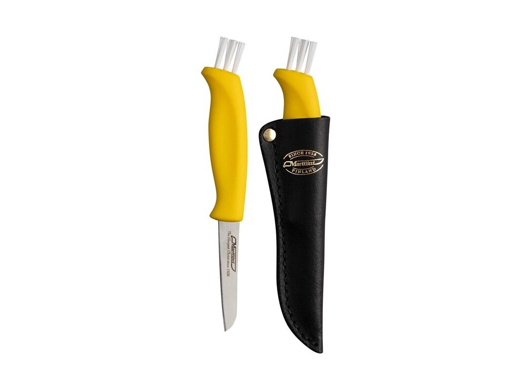 - Marttiini 709012 to niezastąpione narzędzie dla każdego grzybiarza. Dzięki wbudowanej szczoteczce do czyszczenia, ergonomicznemu projektowi i wysokiej jakości skórzanemu etui, nóż ten jest idealnym towarzyszem na każdą wyprawę grzybiarską.