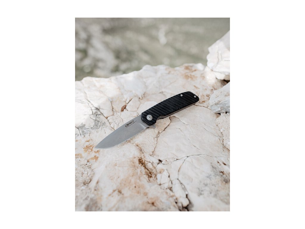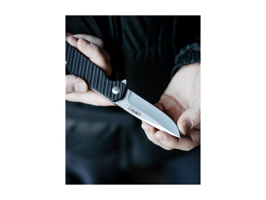 - Rękojeść G10 – teksturowany, wytrzymały materiał zapewnia stabilny chwyt.