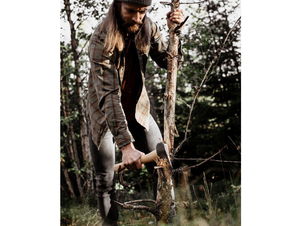Głowica o masie 500 g wykonana z wysokowęglowej stali zapewnia świetną penetrację drewna, wysoką trwałość i zdolność trzymania ostrości. Nadaje się do rozłupywania, cięcia i lekkich prac obozowych.