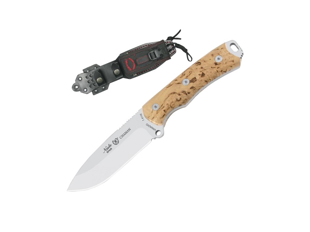 Miguel Nieto Chaman 140-AK to wytrzymały nóż z głownią typu full tang, stworzony z myślą o użytkownikach szukających niezawodnego narzędzia do bushcraftu, survivalu i outdooru. Dzięki ostrzu o długości 11,5 cm i grubości 5 mm ze stali Vanadium 1.4116 oraz ergonomicznej rękojeści z naturalnej kudrzawej brzozy, ten nóż poradzi sobie w każdych warunkach terenowych.