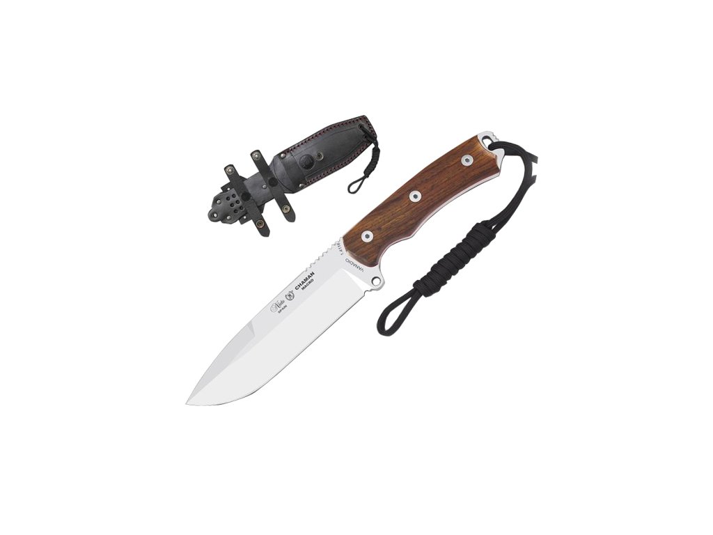 Miguel Nieto Chaman Macro 141-C to niezawodny nóż z pełną konstrukcją full tang, zaprojektowany do bushcraftu, surwiwalu i aktywności outdoorowych. Ostrze ze stali nierdzewnej 1.4116 o długości 14,5 cm i grubości 5 mm zapewnia wyjątkową wytrzymałość i odporność na korozję, a ergonomiczna rękojeść z drewna cocobolo gwarantuje komfortowy i bezpieczny chwyt nawet podczas intensywnego użytkowania.