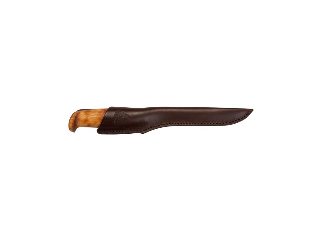 Helle Fiskekniv Filet 160316 to wysokiej jakości nóż do filetowania ryb, zaprojektowany z myślą o precyzyjnym i efektywnym użytkowaniu. Posiada elastyczne ostrze wykonane ze stali nierdzewnej Sandvik 12C27 o grubości zaledwie 1,4 mm, co zapewnia doskonałą giętkość i wyjątkową ostrość. Ergonomiczna rękojeść z drewna brzozowego gwarantuje komfortowy chwyt i umożliwia precyzyjne cięcie. Nóż dostarczany jest z brązową skórzaną pochwą z uchwytem na pasek.