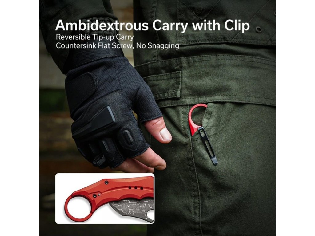 - Stalowy klips Tip-Up – dyskretne i wygodne noszenie w kieszeni.