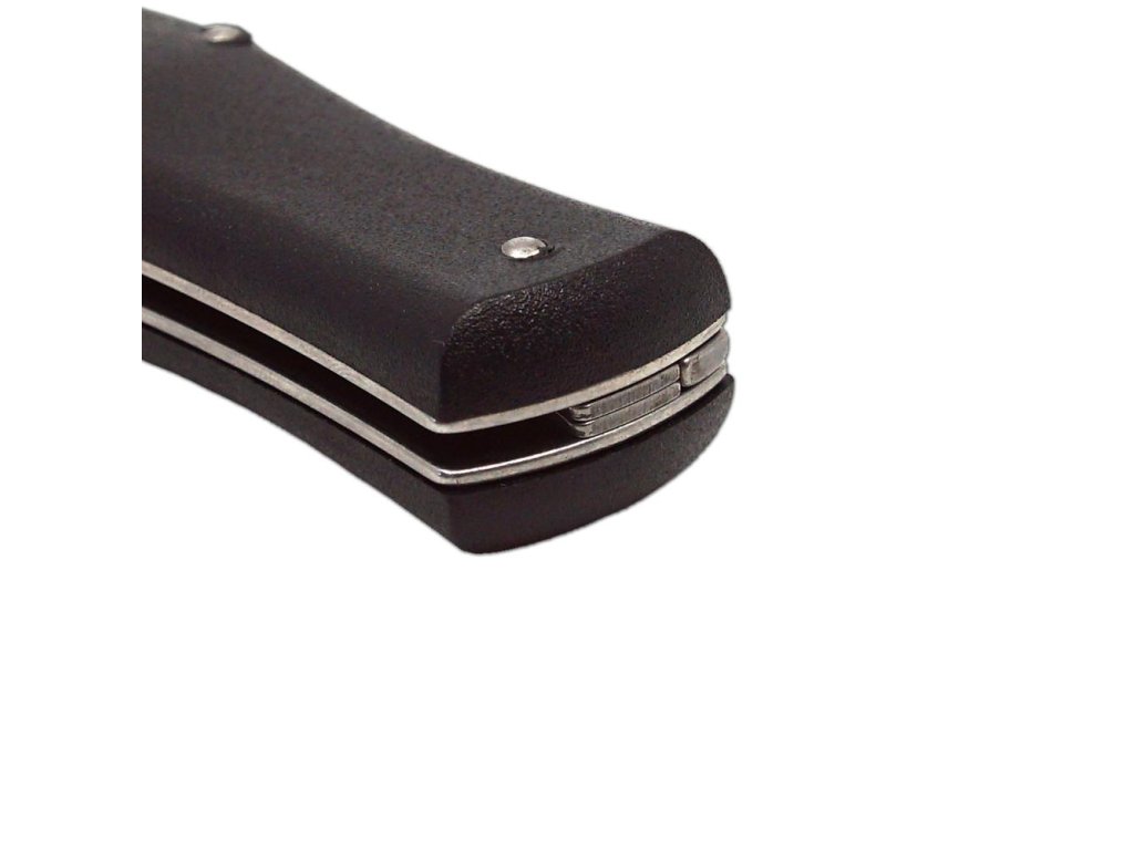 Rękojeść z wytrzymałego czarnego tworzywa zapewnia pewny chwyt i wygodę nawet podczas długiego użytkowania. Całość jest lekka, funkcjonalna i nadaje się zarówno do EDC, ako aj do reprezentacyjnych zastosowań.