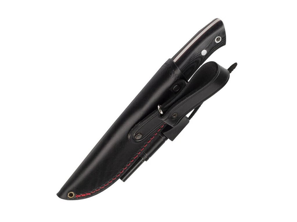 - Skórzana pochwa z krzesiwem: Wysokiej jakości skórzane etui umożliwia bezpieczne przenoszenie noża oraz szybkie rozpalanie ognia w terenie.