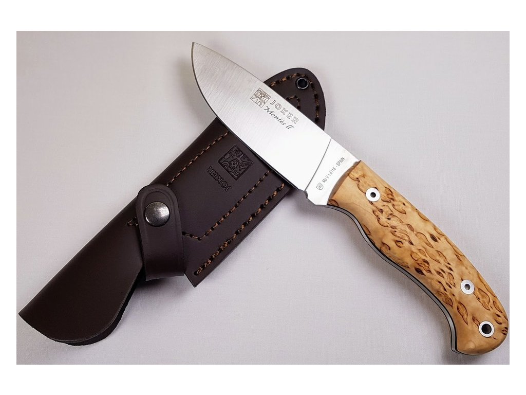 - Skórzane etui: eleganckie i trwałe, z tłoczonym logo Joker – zapewnia ochronę noża podczas transportu i przechowywania.