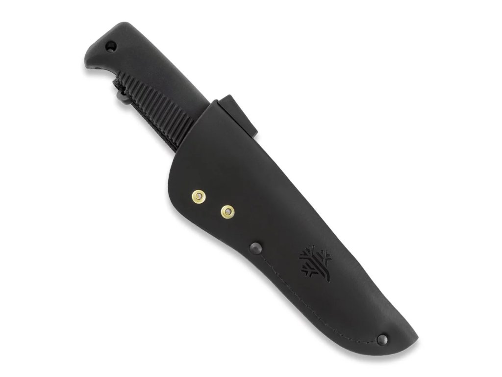 Nóż posiada pełną konstrukcję full tang, dzięki czemu jest maksymalnie odporny na uszkodzenia. Rękojeść wykonana z czarnego TPE gwarantuje pewny chwyt nawet w deszczu, śniegu i niskiej temperaturze. Materiał jest odporny na ścieranie, chemikalia i duże różnice temperatur.