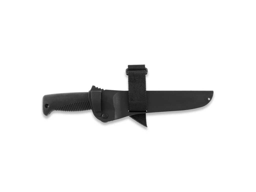 Konstrukcja full tang zwiększa wytrzymałość i stabilność, a rękojeść z czarnego TPE gwarantuje pewny chwyt nawet w deszczu, mrozie czy błocie.