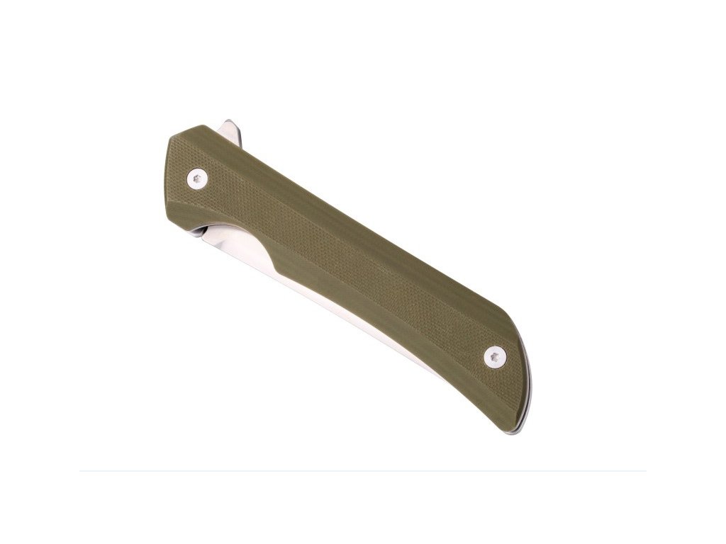 Antypoślizgowa, zielona rękojeść z G10 (włókno szklane + żywica) gwarantuje stabilność, ergonomię i trwałość nawet podczas intensywnego użytkowania.