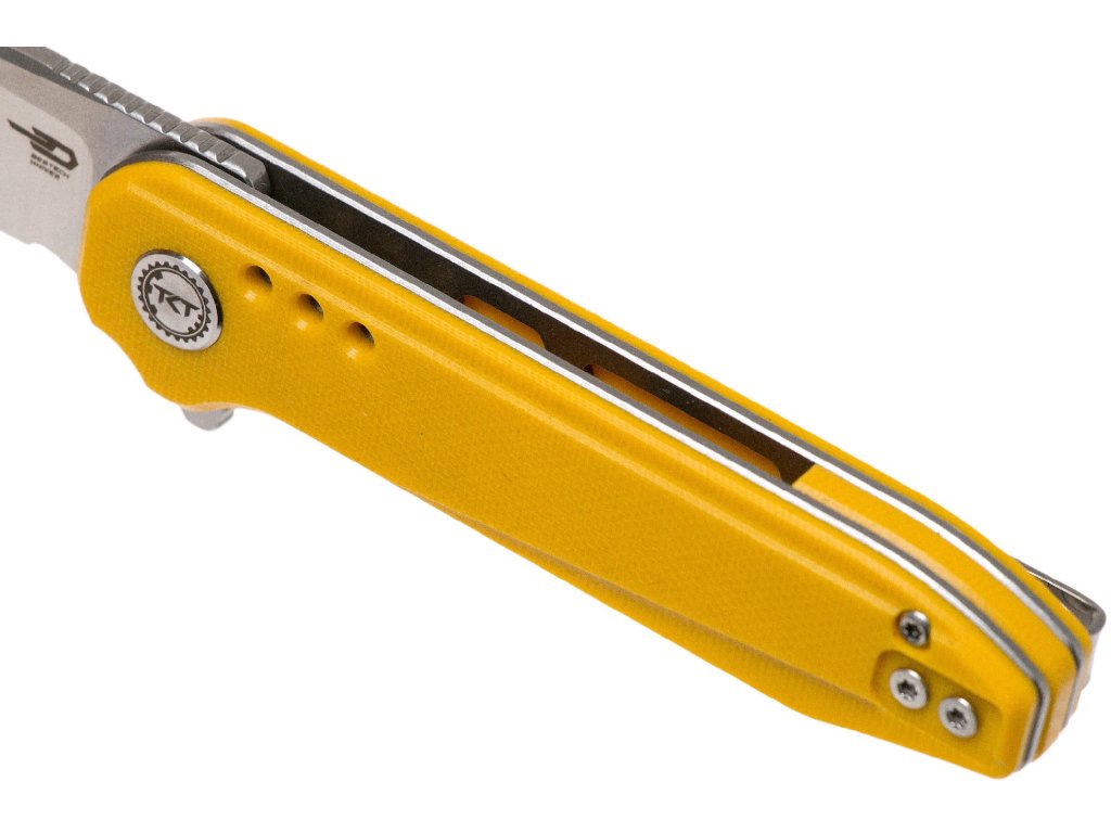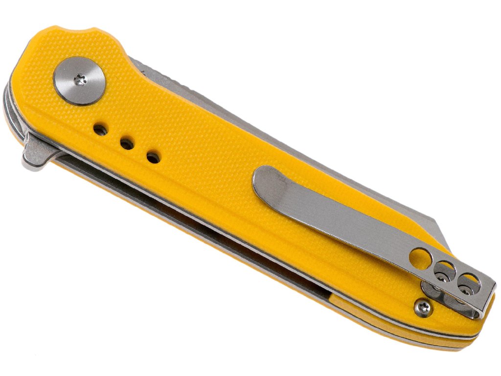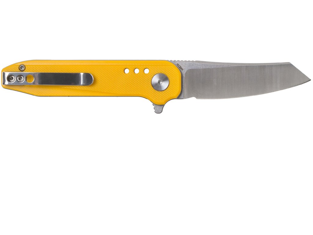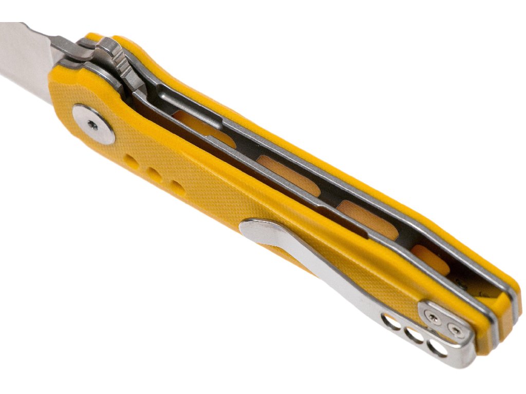 Rękojeść z żółtego G10 to połączenie estetyki i wytrzymałości. Ergonomiczny kształt oraz teksturowana powierzchnia gwarantują pewny chwyt, nawet w trudnych warunkach pogodowych. G10 to materiał odporny na uszkodzenia mechaniczne i wilgoć – idealny dla aktywnych użytkowników.