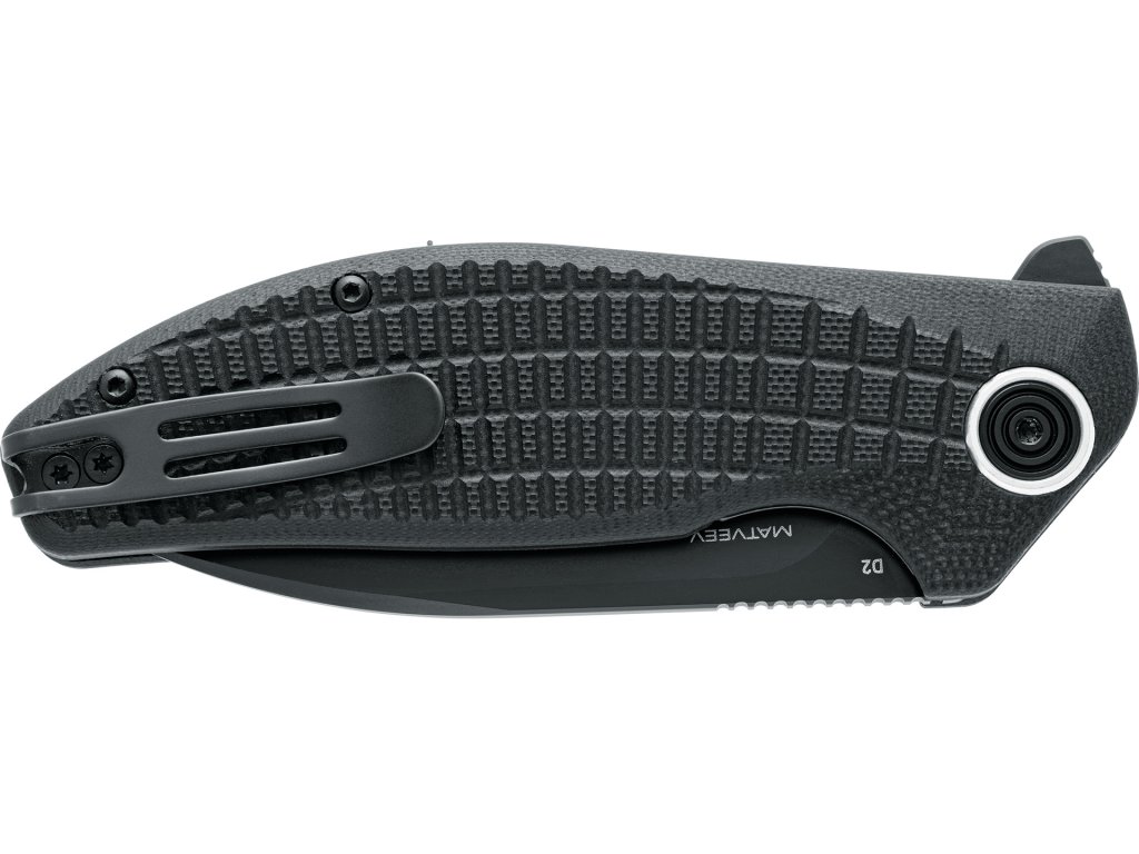 - Rękojeść z czarnego G10: mocna, lekka i wygodna w każdej sytuacji.