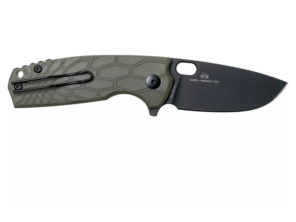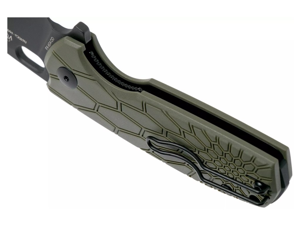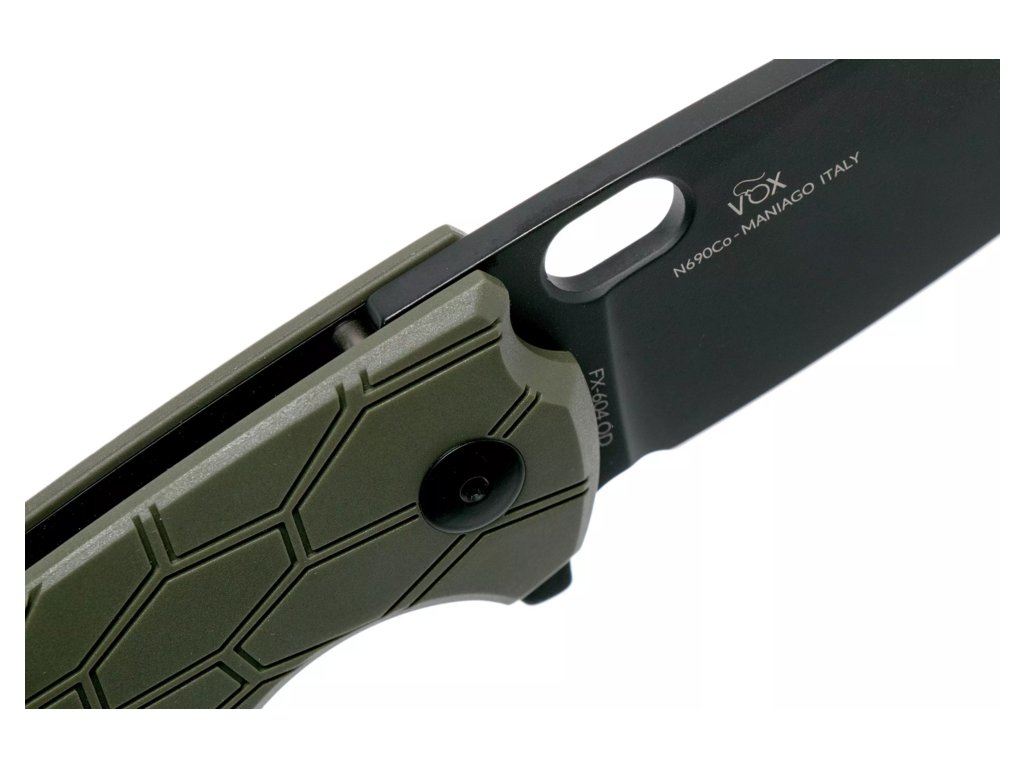Fox Core FX-604 OD to wszechstronny nóż składany zaprojektowany przez znanego projektanta Jespera Voxnaesa. Jego solidna konstrukcja, wysokiej jakości materiały i funkcjonalne detale sprawiają, że jest idealnym wyborem zarówno na co dzień, jak i do zadań outdoorowych. Ostrze ze stali nierdzewnej N690Co pokryte czarną powłoką jest odporne na korozję i długo trzyma ostrość, a rękojeść z FRN w oliwkowym kolorze zapewnia pewny chwyt i dużą trwałość.