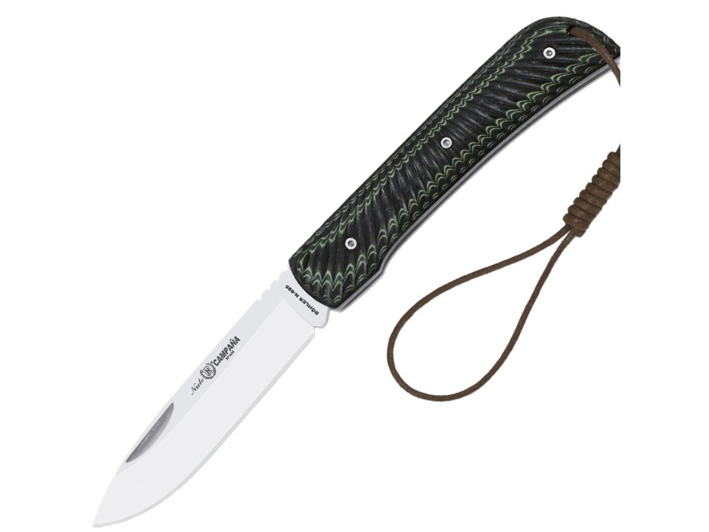 Miguel Nieto Campana to solidny nóż składany zaprojektowany z myślą o codziennym użytkowaniu i aktywnościach outdoorowych. Hiszpańska jakość wykonania łączy się tu z funkcjonalnością i eleganckim designem. Ostrze ze stali nierdzewnej 14C28N i rękojeść z teksturowanej mikarty gwarantują trwałość, wygodę i estetykę.