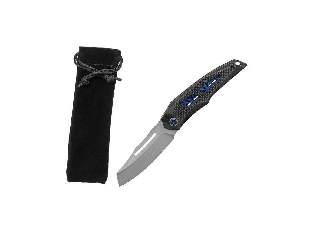 - Ergonomiczna rękojeść: Wykonana z G10 i włókna węglowego, z niebieskimi stalowymi wzmocnieniami – świetny chwyt i wyjątkowy wygląd 💙.