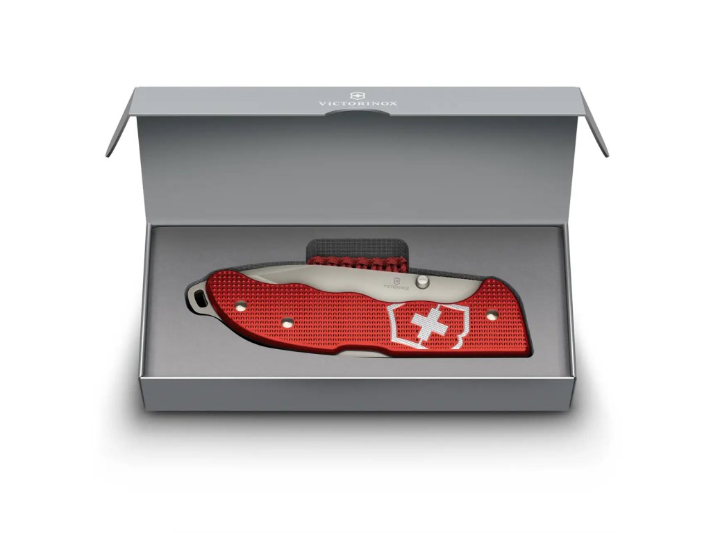 Victorinox Hunter Pro Alox w kolorze czerwonym to elegancki i wytrzymały nóż składany, idealny do codziennego noszenia (EDC). Jego smukła konstrukcja, trwałe okładki z anodowanego aluminium Alox i niezawodna blokada BackLock sprawiają, że jest to świetny wybór dla każdego, kto ceni funkcjonalność i styl.