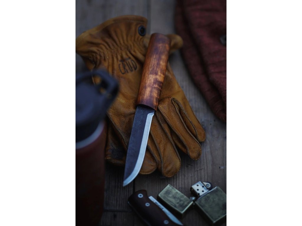 Po każdym użyciu należy wytrzeć ostrze do sucha i od czasu do czasu naoliwić rękojeść. Skórzaną pochwę warto konserwować tłuszczem lub woskiem do skóry – dzięki temu zachowa elastyczność i odporność na wilgoć.
