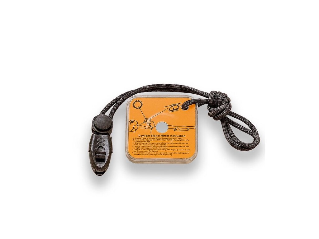 - Akcesoria w zestawie: Krzesiwo, lusterko sygnalizacyjne, gwizdek alarmowy i 2 m linki paracord 550.