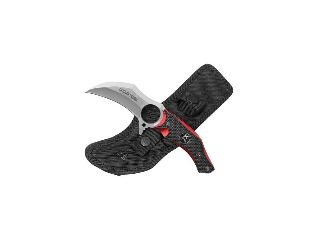 RUI Tactical K25 – zakrzywiony nóż karambit z pierścieniem i powłoką tytanową