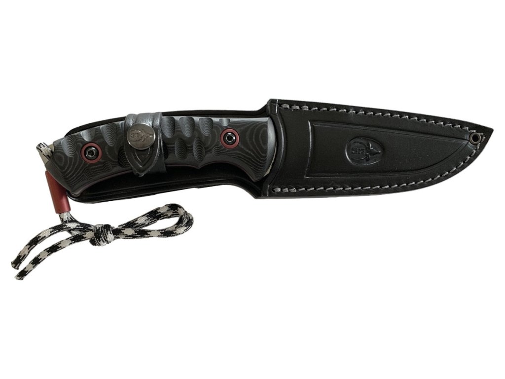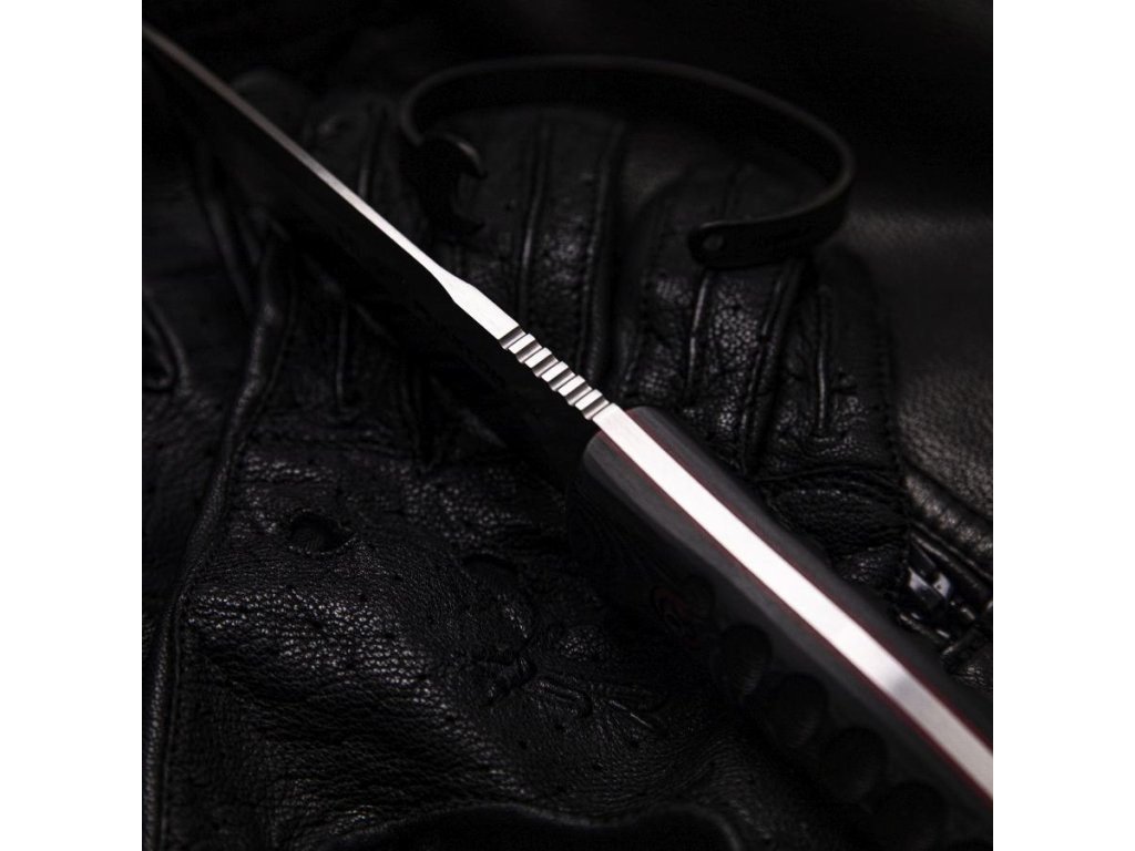 Dzięki połączeniu funkcjonalności, ergonomii i stylowych akcentów w postaci czerwonych pierścieni, nóż prezentuje się wyjątkowo profesjonalnie. W komplecie znajduje się czarne, eleganckie etui ze skóry naturalnej oraz skórzany pasek do przenoszenia. To model, który łączy piękno z gotowością do działania.