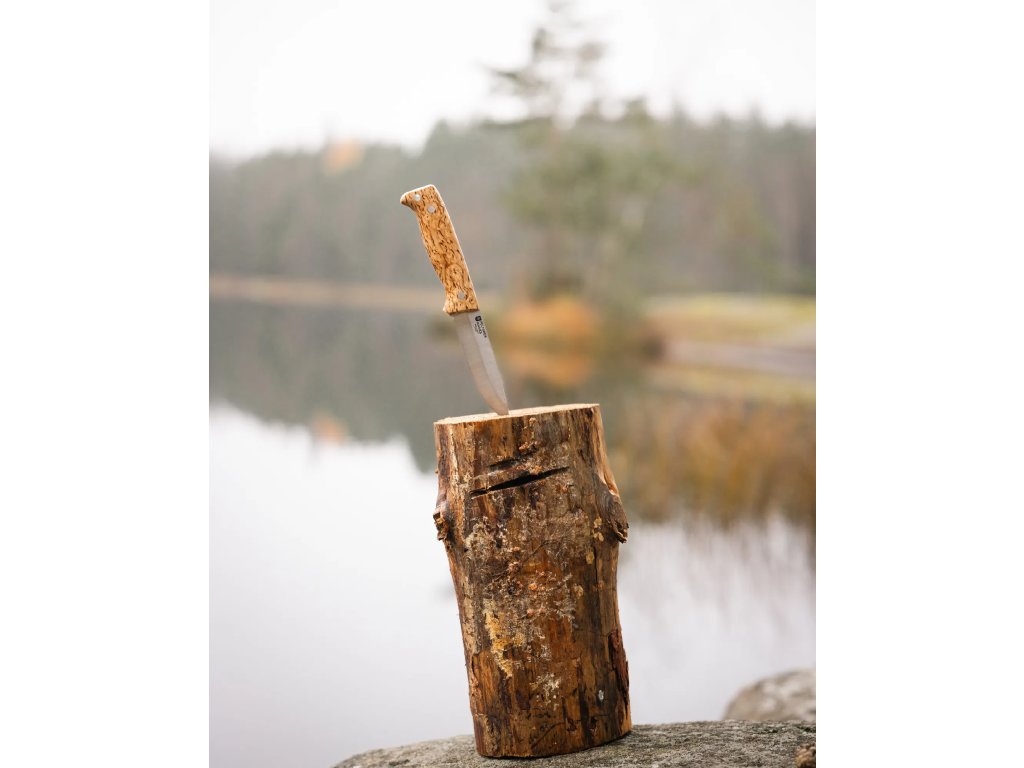 Wariant Curly Birch wykorzystuje naturalną, fińską falistą brzozę, która wyróżnia się piękną strukturą oraz świetnym wyczuciem w dłoni. Wyprofilowanie rękojeści zapewnia pewny, stabilny i komfortowy chwyt zarówno w suchych, jak i wilgotnych warunkach. Połączenie z konstrukcją full tang gwarantuje maksymalną wytrzymałość.
