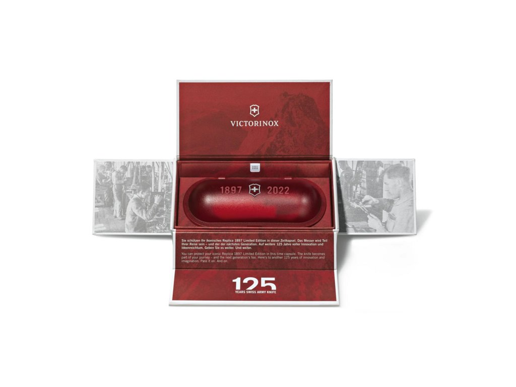 Victorinox Replica 1897 Limited Edition to wyjątkowa kolekcjonerska edycja, stworzona z okazji 125-lecia kultowego szwajcarskiego scyzoryka. Model w stylu retro zachwyca wulkanizowanymi okładzinami z fibry oraz tłoczeniem "Elsener Schwyz" na dużym ostrzu – dokładnie tak, jak wyglądały oryginalne modele z XIX wieku.