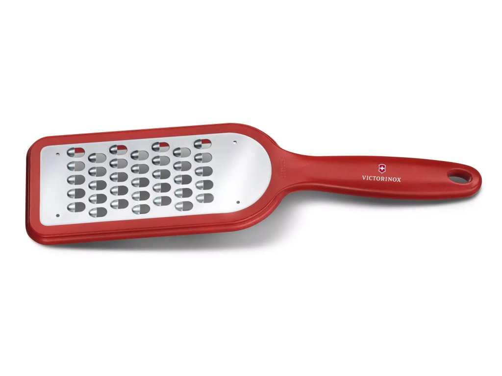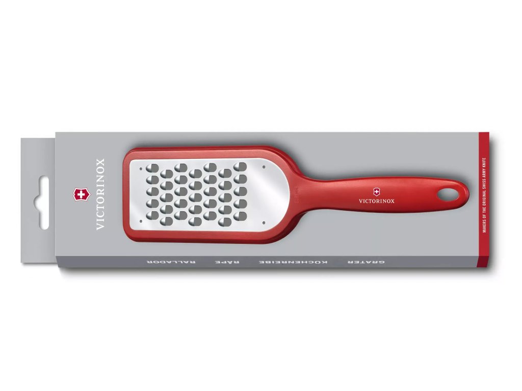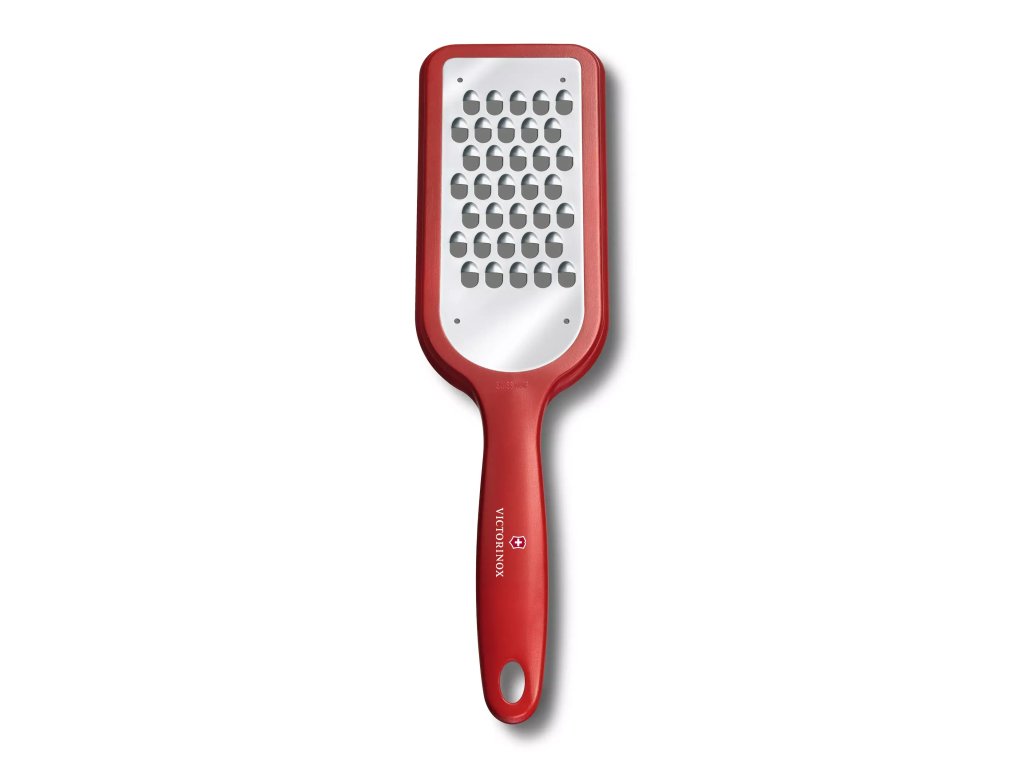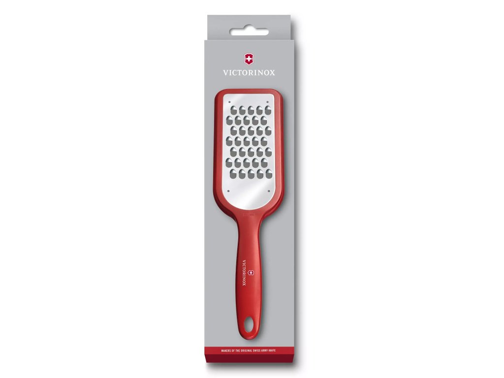 Tarka Victorinox na grube ścieranie 7.6081.1 to niezawodny pomocnik kuchenny, który sprawdzi się w każdej kuchni. Dzięki ostrym stalowym ostrzom nierdzewnym i ergonomicznej, czerwoniej rękojeści, tarka zapewnia łatwe i szybkie ścieranie twardych składników, takich jak sery, warzywa czy czekolada. Jest idealnym narzędziem do przygotowywania świeżych sałatek, surówek czy deserów.