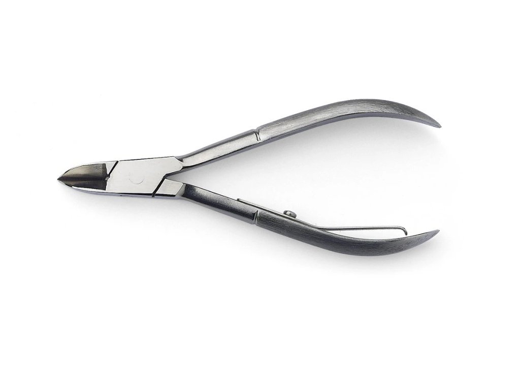 Antypoślizgowe rękojeści z poprzecznym ryflowaniem oraz sprężynowy mechanizm zapewniają stabilność i precyzję podczas cięcia paznokci i korekty skórek.