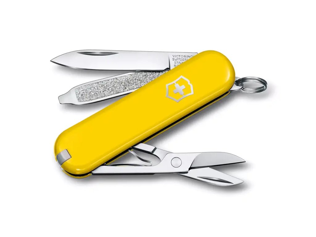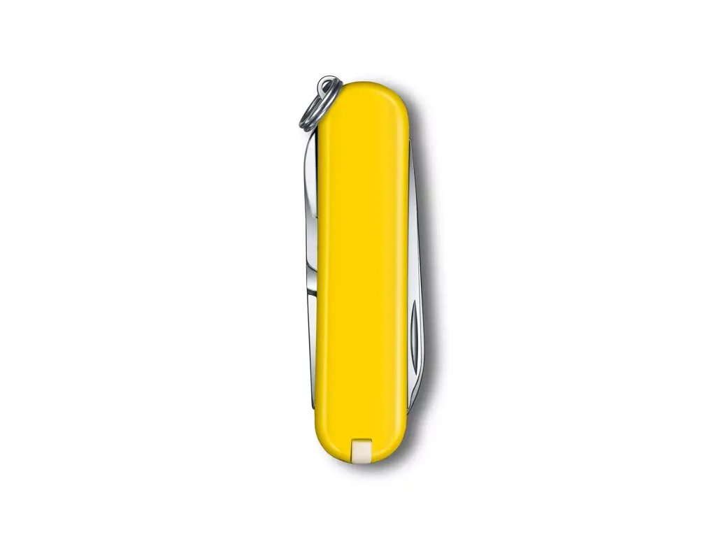 Victorinox Classic SD 0.6223.8G Sunny Side to szwajcarski nóż o żywym, żółtym kolorze, który wprowadza radosny nastrój do każdego dnia. Dzięki 7 funkcjom i kompaktowym wymiarom (5,8 cm), jest to doskonały wybór do codziennego użytku – w pracy, przy drobnych naprawach, a także w manicurze.