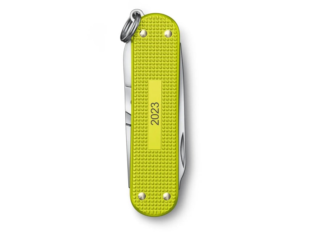 Victorinox Classic SD Alox Limited Edition 2023 to wyjątkowy nóż z roczną edycją Alox, wyróżniający się anodizowanymi, tłoczonymi okładzinami w odważnym elektrycznym żółtym kolorze. Ten model został zaprojektowany tak, aby łączyć trwałość, elegancję i praktyczność w jednym kompaktowym narzędziu.