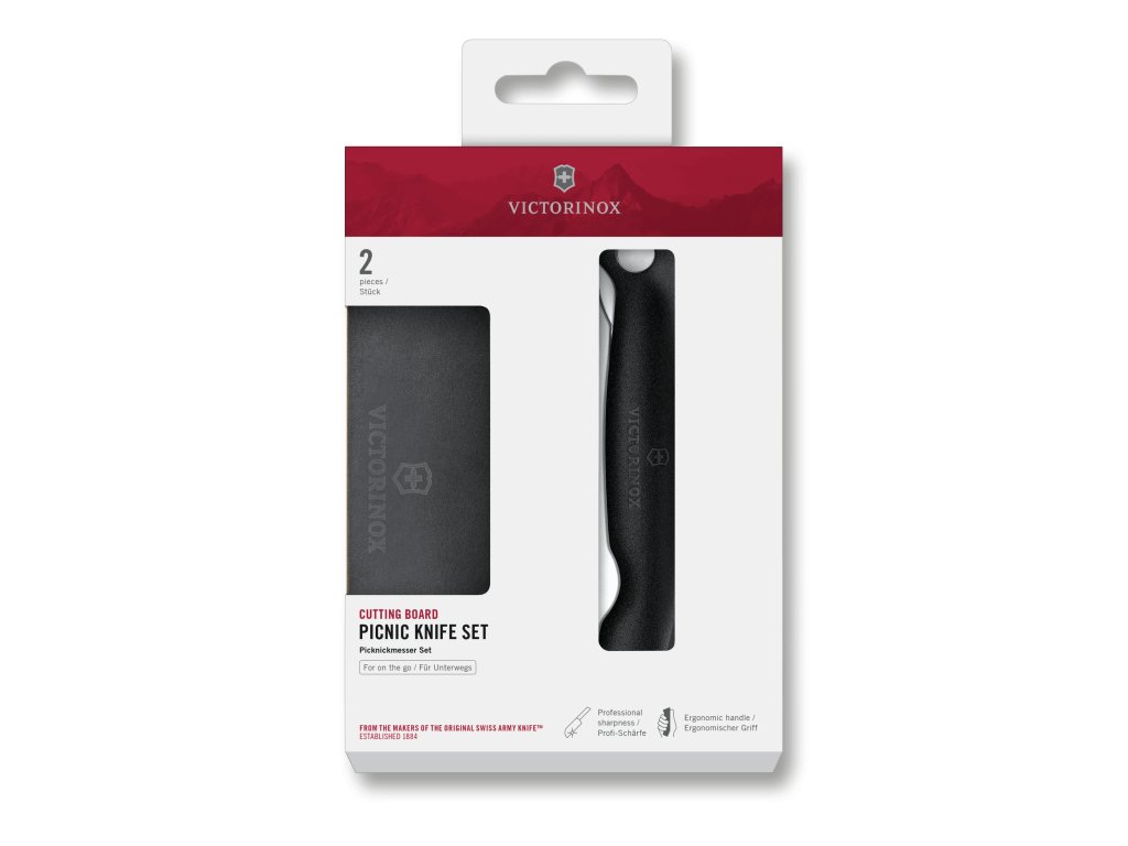 Victorinox Picnic Set to funkcjonalny zestaw dla osób, które chcą wygodnie przygotowywać posiłki w plenerze. W skład wchodzi składany nóż z falistym ostrzem oraz wytrzymała deska do krojenia, dzięki którym przygotujesz jedzenie w każdych warunkach.