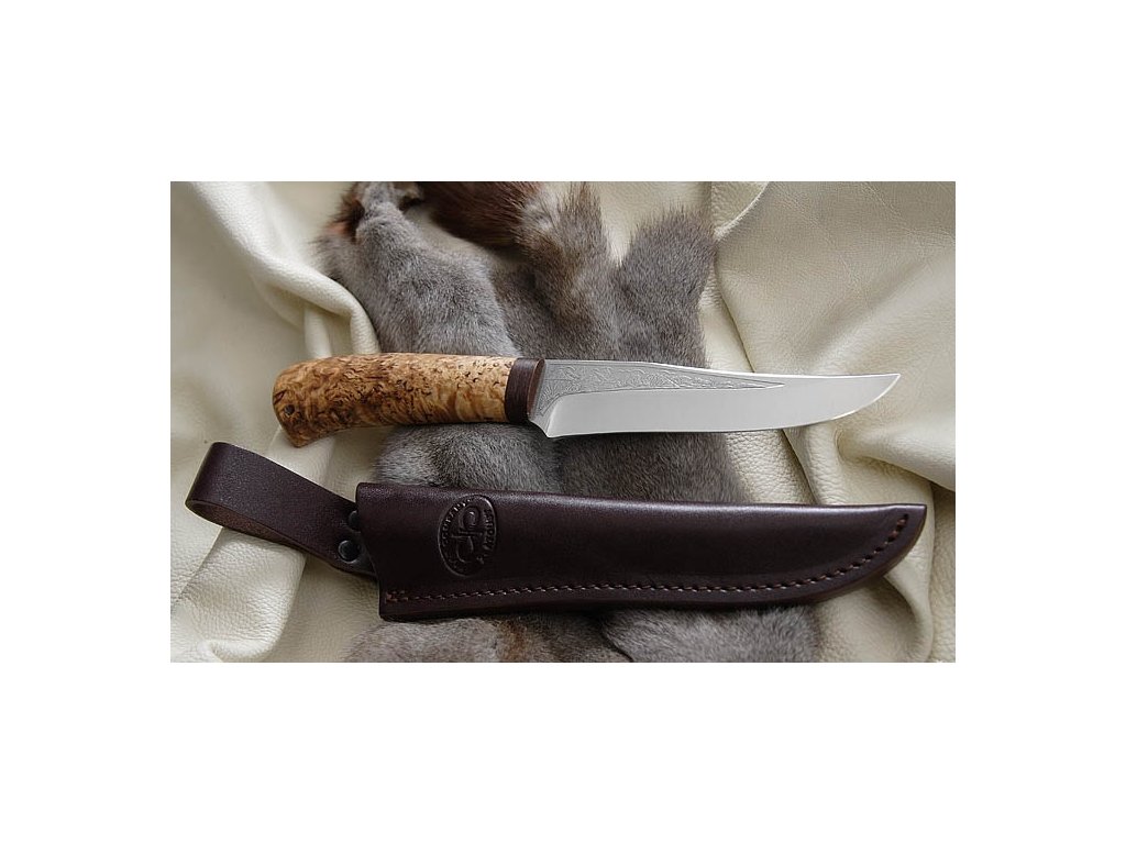 - Ergonomiczna rękojeść: Wykonana z brzozy karelskej, zapewnia wygodny chwyt i naturalny wygląd, co jest istotne dla myśliwych i outdoorowców.